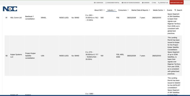 Daté du 28 février 2026, le permis d’atterrissage de sept ans autorise Kuiper à exploiter son segment spatial au Nigeria dans le cadre d’une constellation mondiale allant jusqu’à 3 236 satellites.